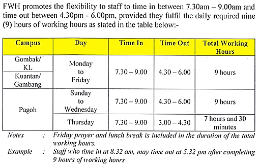 In recognition of evolving workplace needs, IIUM’s MSD implemented Service Circular No. 14/2022, titled “Implementation of Flexible Working Hours (FWH) for Administrative & Technical Staff”, effective from 5 September 2022.