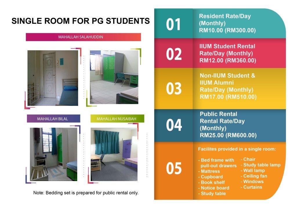 3. Photography/video shoot rate: RM100/hour for the house for IIUM internal users.