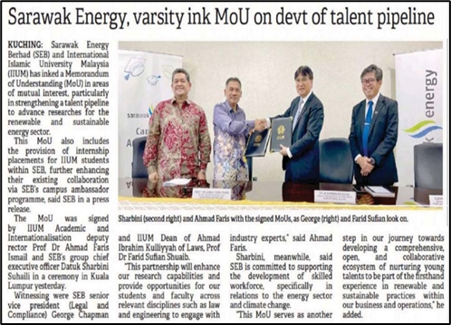 These contributions positioned IIUM as a key voice in Malaysia’s energy transition and climate-governance ecosystem.A major milestone in 2024 was the signing of a Memorandum of Understanding between IIUM and Sarawak Energy Berhad (6 June 2024), focusing on policy and law in green and renewable energy, one of the core areas of the CCPLC.