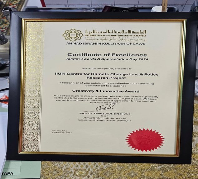 In 2024, IIUM introduced structured academic training on climate-change law through its pilot LL.M. (International Law) – Climate Change Policy and Law Specialisation, conducted from 1 October to 30 December 2024. The programme explored climate governance, climate justice, environmental regulation and policy analysis.