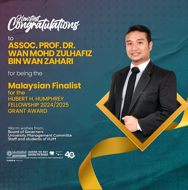 - Hubert H. Humphrey Fellowship (USA) – Assoc. Prof. Dr Wan Zulhafiz Wan Zahari (Climate Governance, Energy Law and ESG)