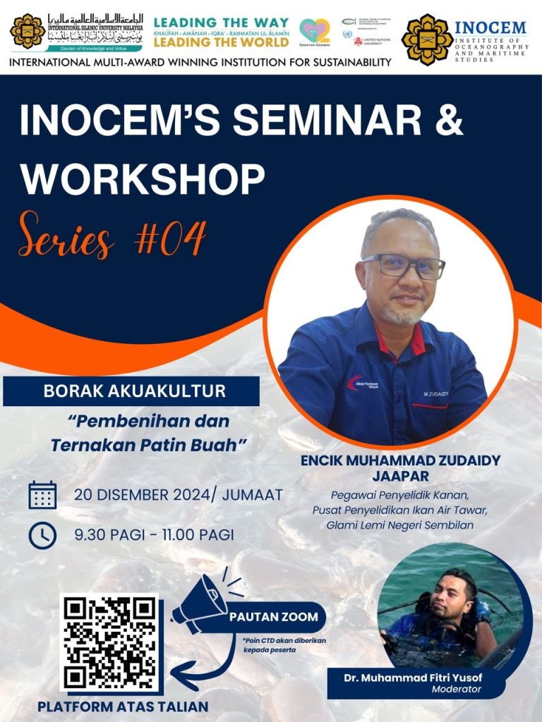 In 2024, the INOCEM Seminar and Workshop Series strengthened IIUM’s contribution to marine science and aquaculture education through expert-led sessions that promoted innovation and interdisciplinary learning.