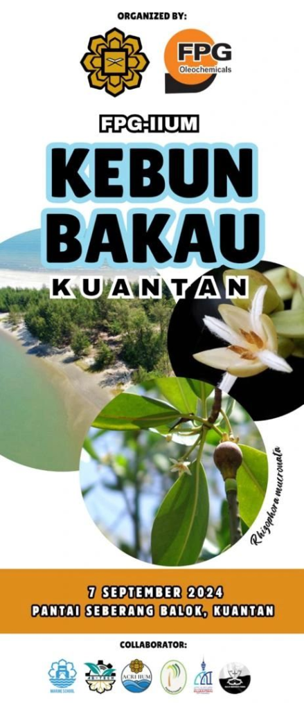 The FPG–IIUM Kebun Bakau Kuantan programme was held on 7 September 2024 at Pantai Seberang Balok, Kuantan, jointly organised by FPG Oleochemicals Sdn Bhd and the ACRIIIUM Research Group, Kulliyyah of Science. It forms part of a sponsored research grant titled “Mangrove Planting Initiative for Coastal Resilience Enhancement and Coral Conservation at Pantai Balok, Kuantan”, led by Assoc Prof Dr Mohd Fuad Miskon and Assoc Prof Dr Rozilawati Shaari. Partners included the IIUM Marine School, AG-Tech Research Group, CAT Research Group and the Kulliyyah of Science. The programme enhanced shoreline protection, improved water quality and promoted awareness of mangrove and coral ecosystem linkages, demonstrating strong industry–university collaboration for research, conservation and community engagement.