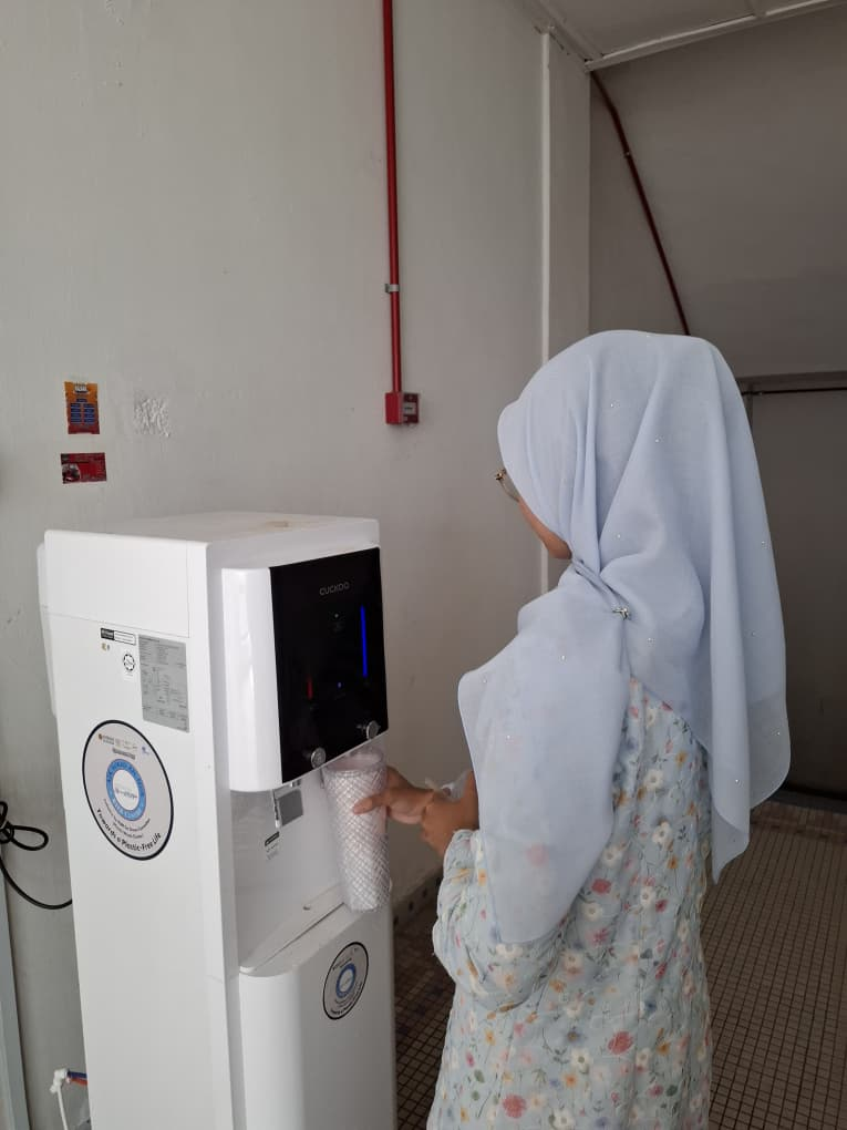 IIUM provides free and safe drinking water across all campuses through water dispenser machines from brands such as Coway, Cuckoo, and other approved suppliers. These machines are installed in student areas, offices, and common spaces to ensure convenient access for students, staff, and visitors. The initiative encourages healthy hydration, reduces plastic waste, and reflects IIUM’s commitment to sustainable living guided by Sejahtera values and Maqasid Shariah principles.